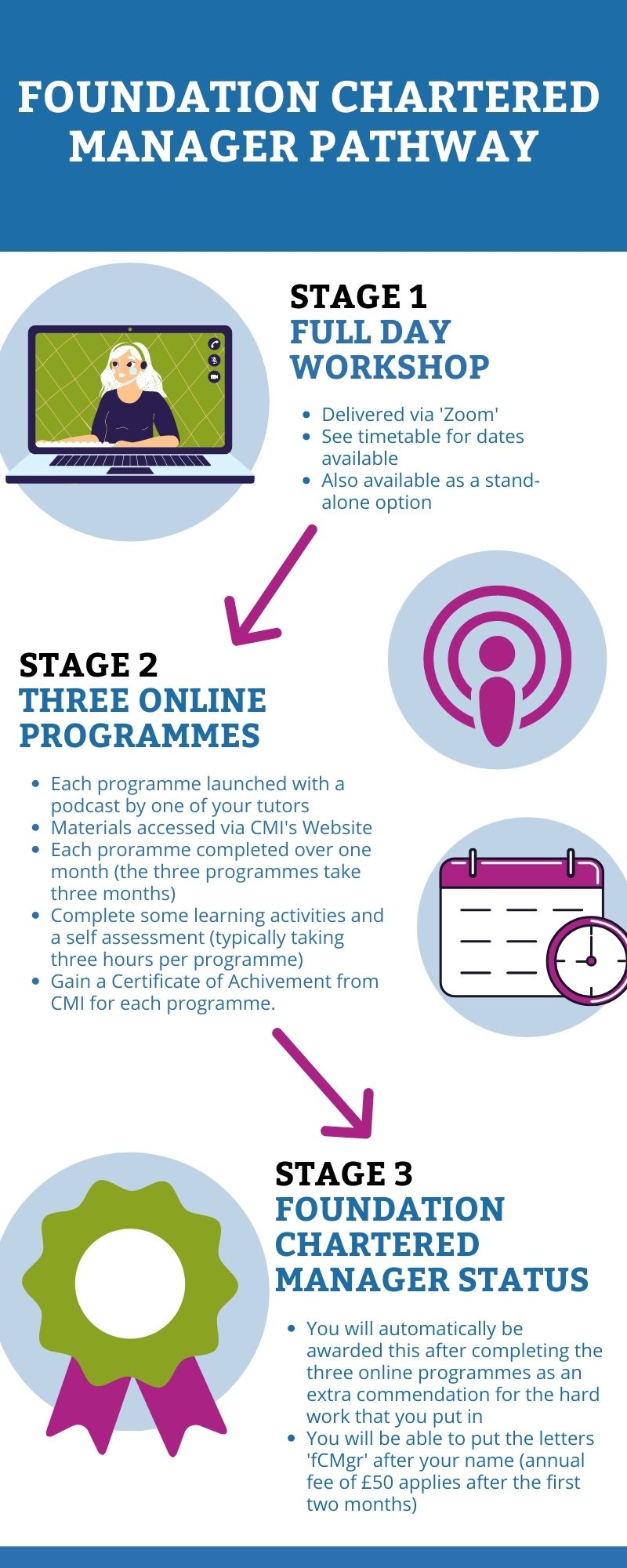After you have completed a programme of study for all of the three key areas, you will also receive Foundation Chartered Manager status.